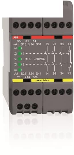 Description:RT6 230AC Safety relay. A universal safety relay for many safety applications. Relay outputs 3NO/1NC