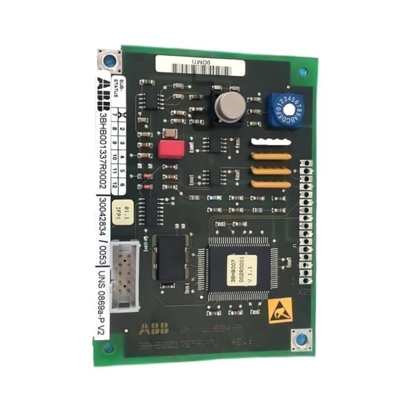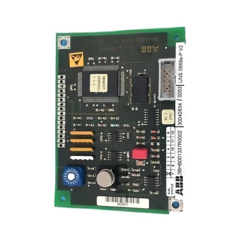 Product Introduction ABB UNS 0869a-P,V2/UNS0869A/UNS0869A-P 3BHB001337R0002 12-Month Warranty Brand:ABB SKU.:UNS 0869a-P,V2/UNS0869A/UNS0869A-P 3BHB001337R0002 Product Type:Interface Control Coa