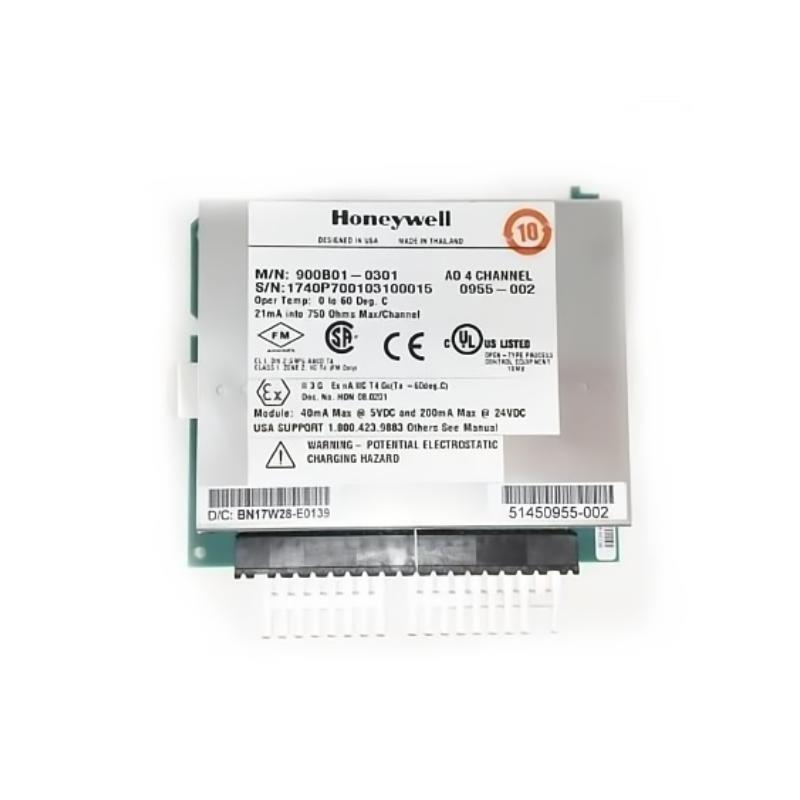 Product Introduction Honeywell 900B01-0301 100% New Brand:Honeywell SKU.:900B01-0301 Product Type:HC900 Analog Output Module Product Origin:USA Dimensions:137 x 35.6 mm Weight:0.408kg Stan